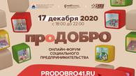 21 декабря 2020На Камчатке прошёл онлайн-форум «ПроДобро», посвящённый актуальным вопросам социального предпринимательства. Трансляция велась с площадки Камчатского выставочного центра, где собрались эксперты – камчатцы, создавшие собственные успешные проекты в сфере социального предпринимательства, и представители органов власти Камчатского края. Также в форуме приняли участие спикеры федерального уровня – предприниматели и члены общественных организаций, объединяющих и поддерживающих представителей этого довольно нового в России вида бизнеса. -