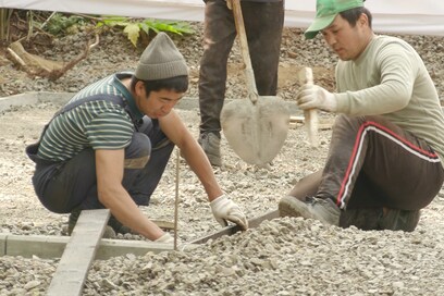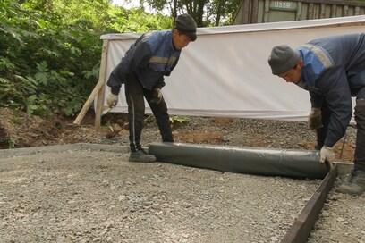 Как сообщил мастер строительного участка Николай Терлецкий, перед выполнением работ по обустройству детской площадки было подготовлено основание территории. Поскольку участок находится на склоне, была произведена выемка грунта.