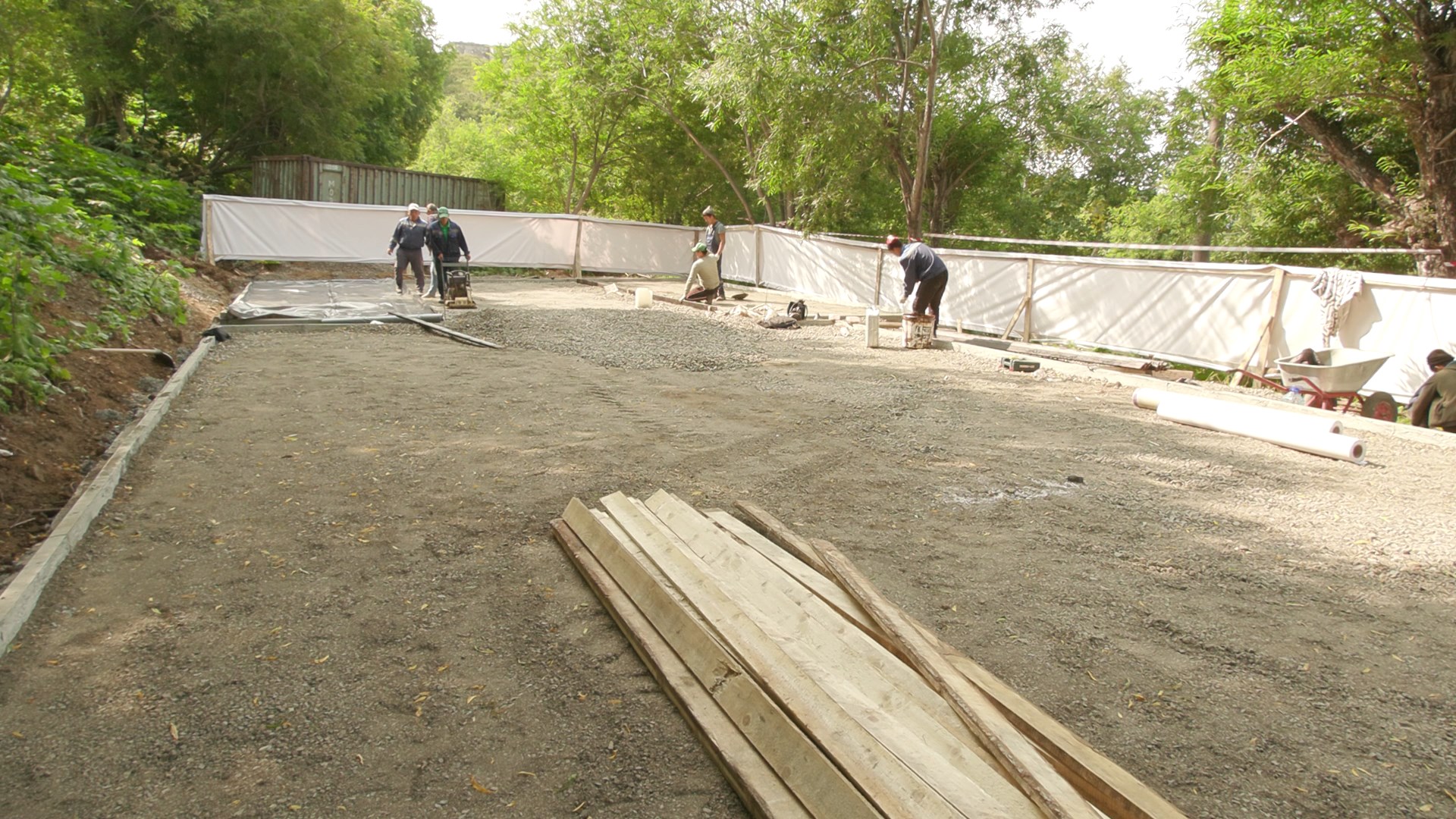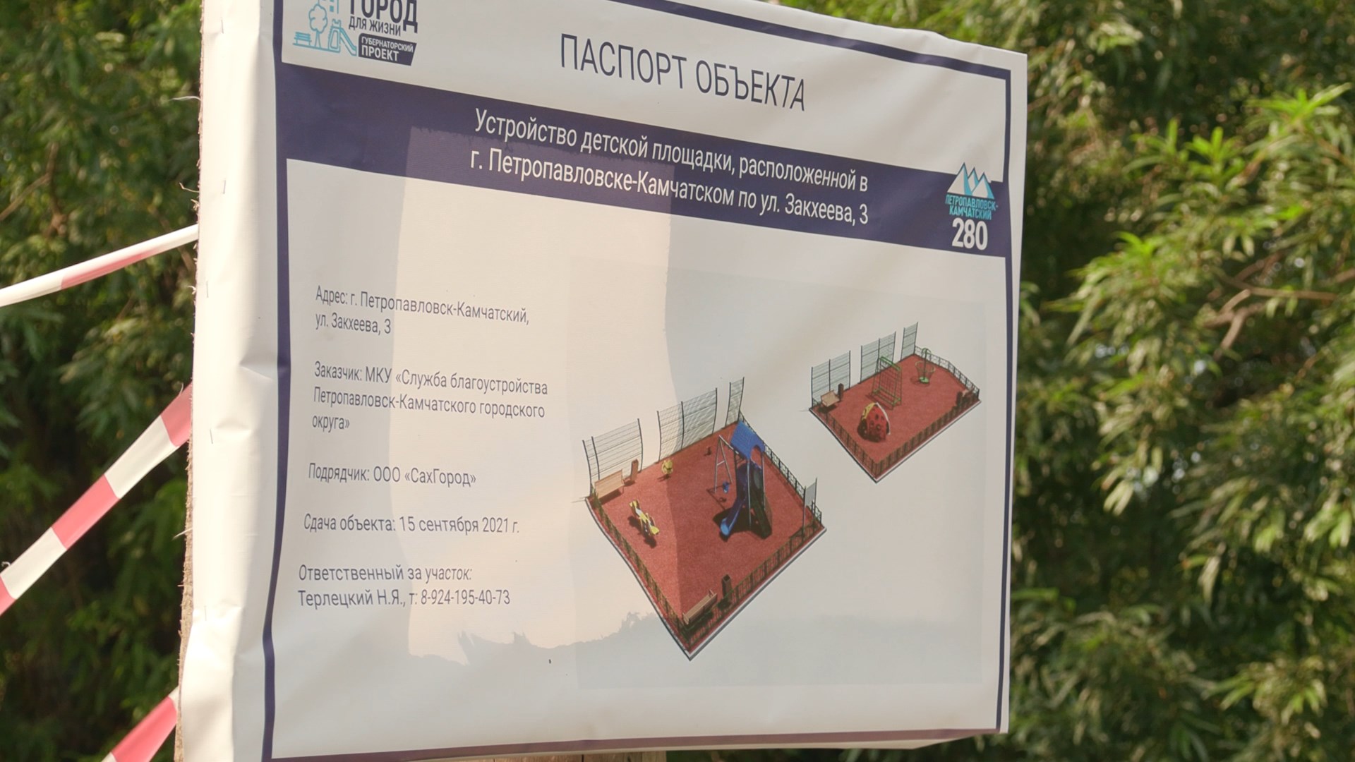 «На сегодня на территорию будущей площадки завезён щебень, виброкатком произведена его утрамбовка. В пятницу строительная бригада планирует заливать бетон, после высыхания которого будет произведена укладка резинового покрытия и установка малых архитектурных форм. Оборудование находится в пути. По нашим расчётам, все работы будут выполнены в заявленные сроки», — сказал Николай Терлецкий.