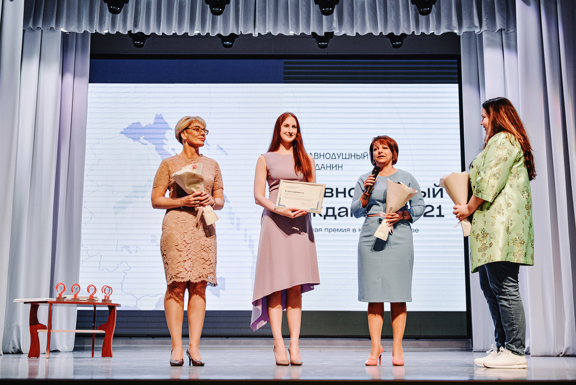 Поздравляем победителей Премии: в номинации «Семья и дети» Ичанга Октябрина, в номинации «Просвещение» Михайлова Алина, в номинации «Мой город» Навроцкая Анна, в номинации «Природа» Михайлова Татьяна, в номинации «Культура» Суровцева Юлия, в номинации «Здоровый дух» Ильина Елена.