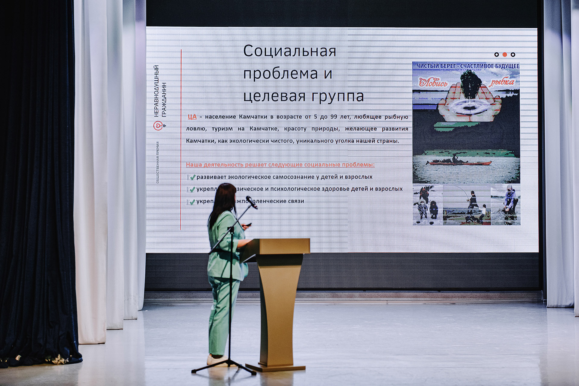 В финале участники презентовали свои социально значимые проекты. Список финалистов доступен на сайте премии: https://камчатка.неравнодушныйгражданин.рф/.